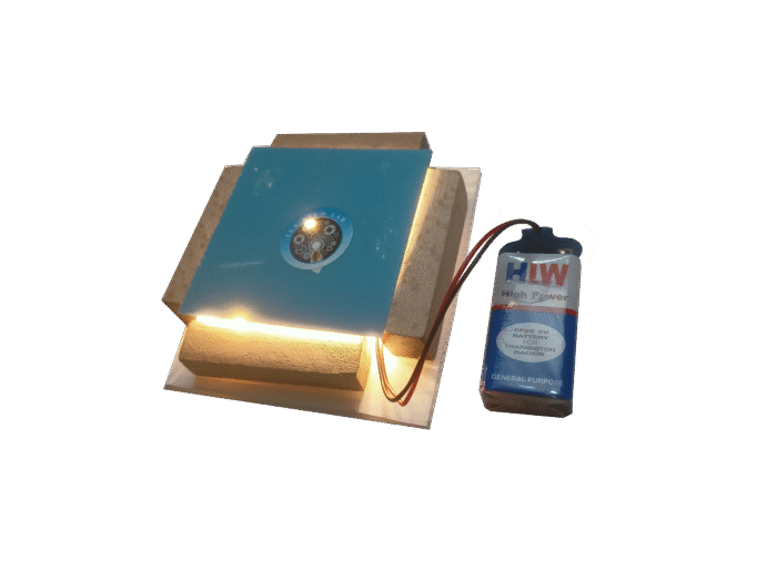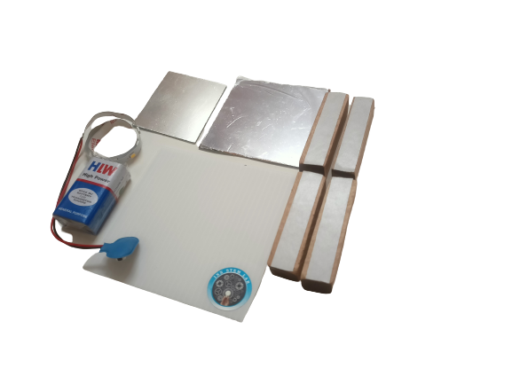 Box contains all material required to perform the activities like Battery, Wires, LED Strips, Battery holder, Corrugated Sheet, conducting wire, Mirrors, Wooden Sticks, Double Sided tape etc.